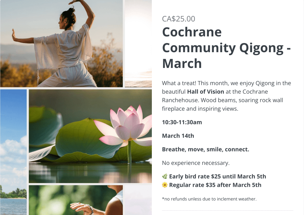 To be notified about in-person and online classes around Cochrane & area, sign up for my newsletter.